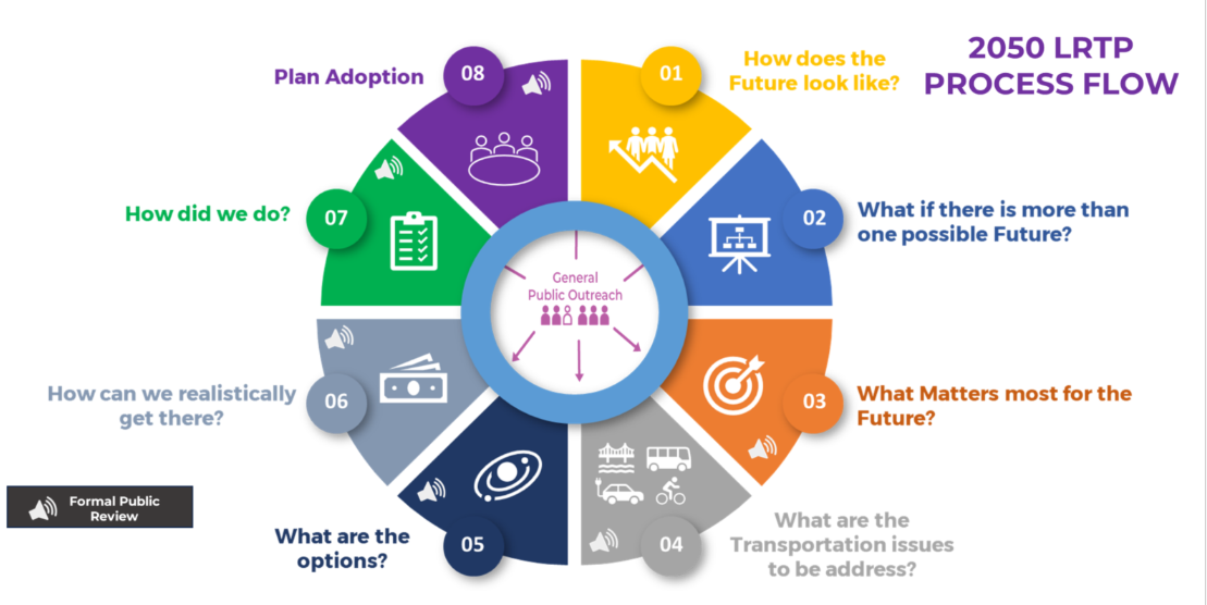 Long-Range Transportation Plan (LRTP) is updated every 5 years. This plan is intended to inform decision making and identify transportation needs through the year 2050.